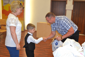 В торжественной обстановке дети и их родители получили альбомы, кисти, краски, карандаши, ручки, папки для того, чтобы учебный год для детей был легким и продуктивным.