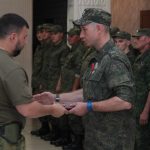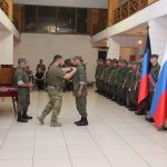 Глава государства прикрепил орден Республики на полотно знамени подразделения, после чего вручил награды бойцам. В этот день порядка 50 военнослужащих были награждены государственными наградами: медалью «За отвагу», знаками отличия «Георгиевский крест» III и IV степеней.