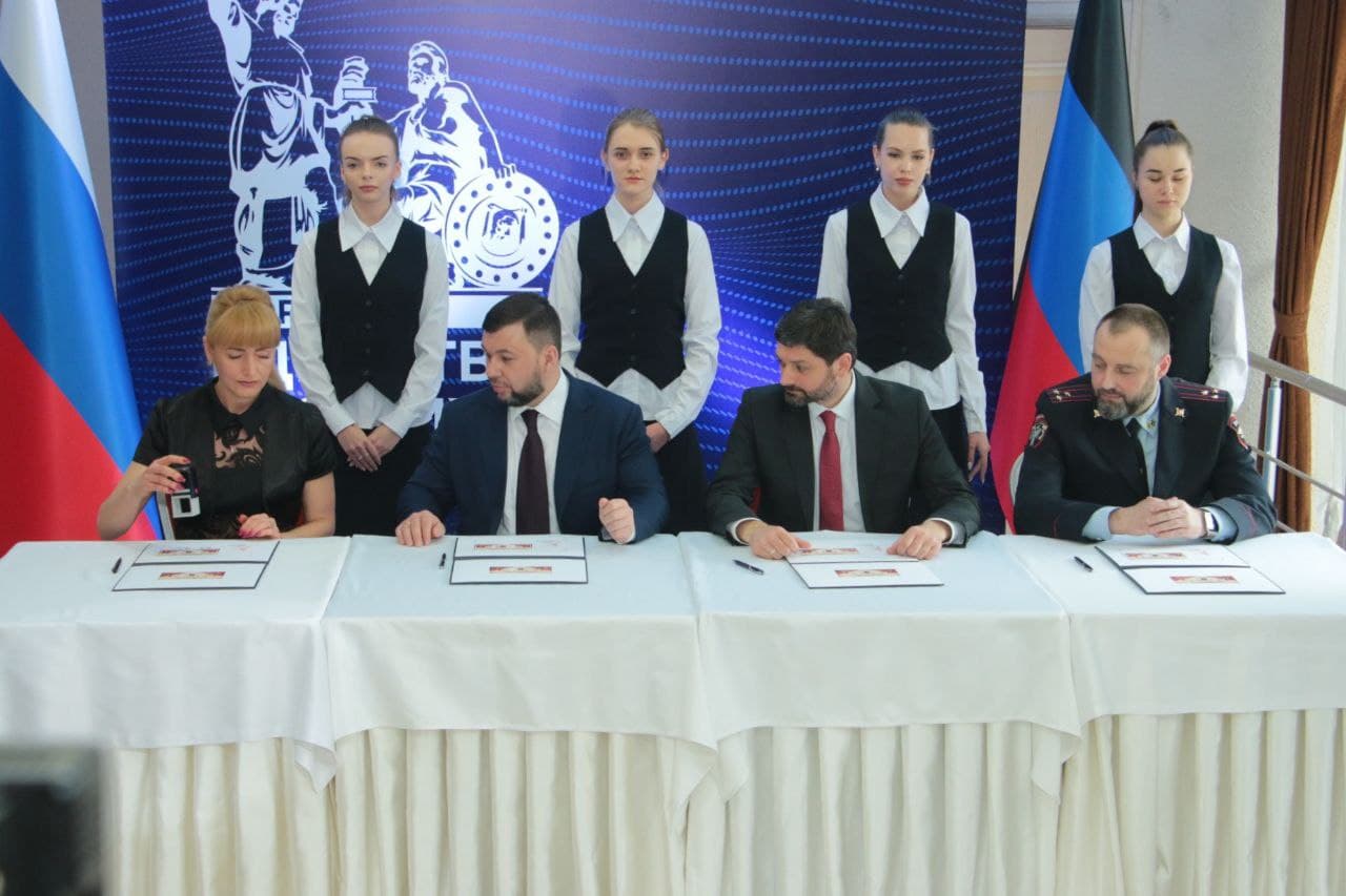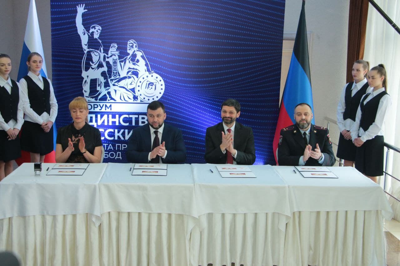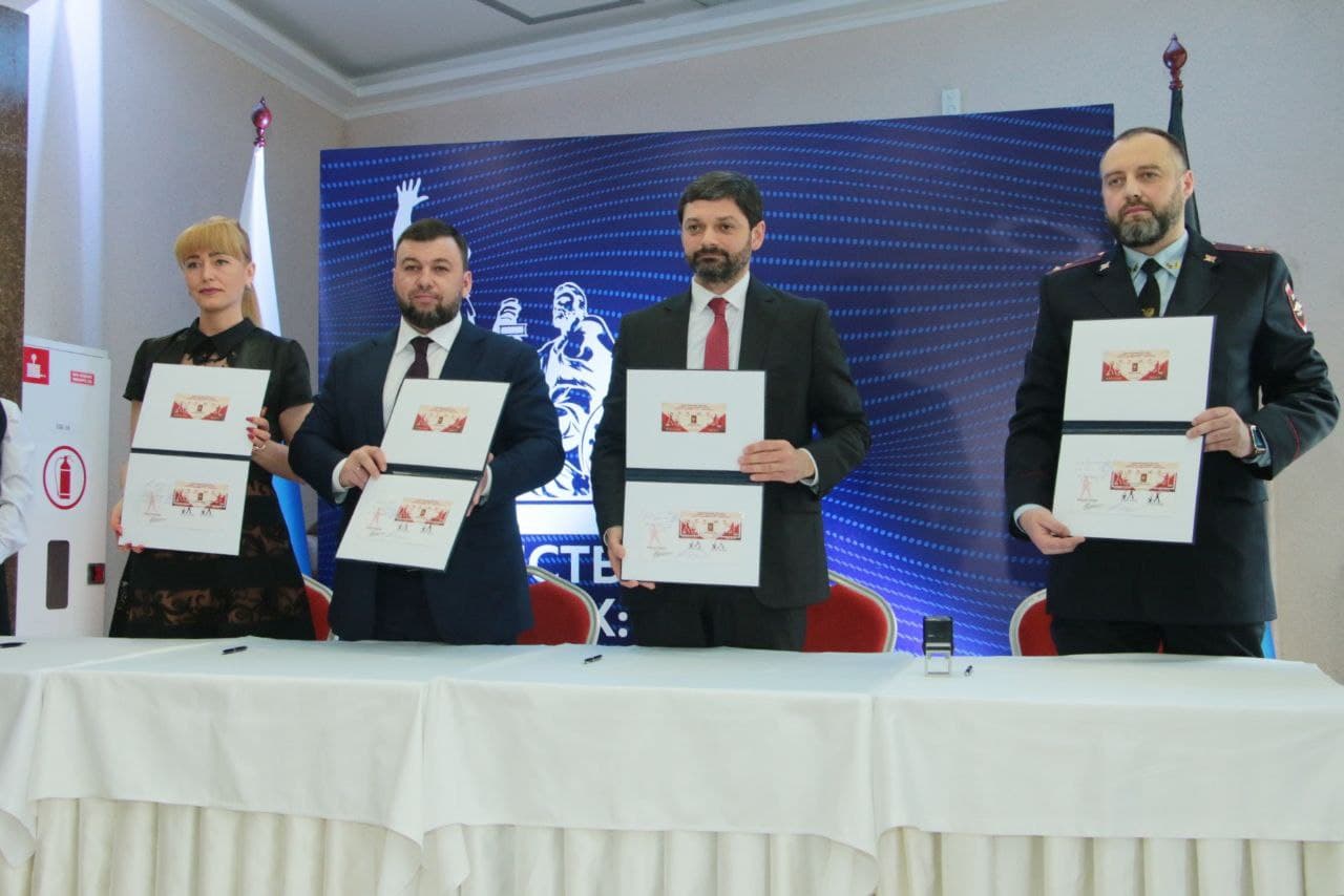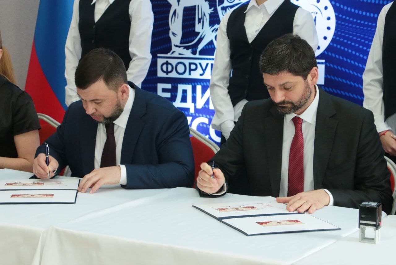 Сегодня, 22 апреля, в рамках проведения международного форума «Единство русских: защита прав и свобод», Глава Донецкой Народной Республики Денис Пушилин принял участие в торжественной церемонии специального гашения почтового блока «Полумиллионный паспорт». Данный почтовый блок является совместным выпуском почтовых ведомств ДНР и ЛНР, и посвящен выдаче жителям Донбасса 500 тысяч паспортов Российской Федерации.