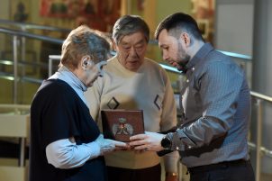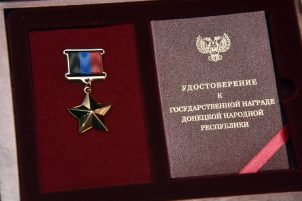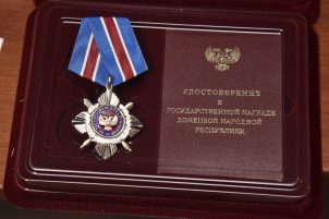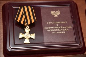 Елена Попова получила из рук Дениса Пушилина Золотую Звезду Героя ДНР погибшего супруга Александра Попова, который в 2014 году не смог остаться в стороне после незаконного переворота в Киеве и пошел служить в ополчение.