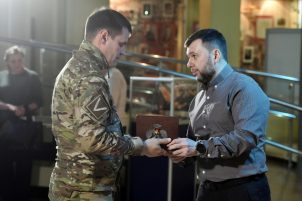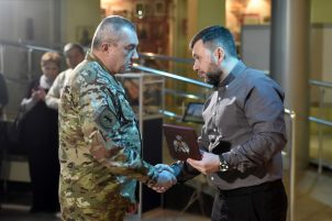 Глава Донецкой Народной Республики Денис Пушилин наградил военнослужащих различных подразделений Вооруженных сил Российской Федерации и поздравил бойцов с Днем защитника Отечества.