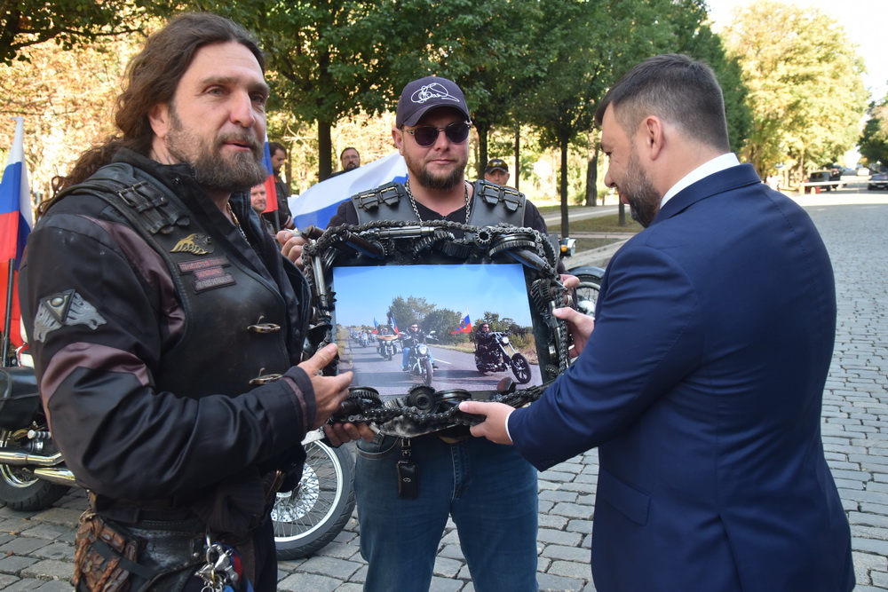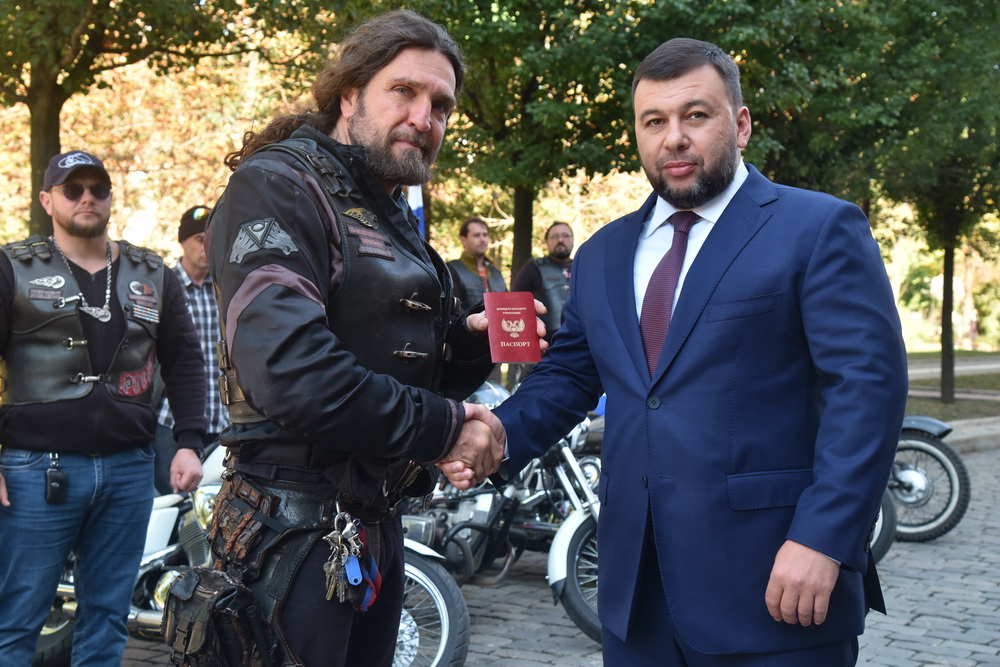 Глава Донецкой Народной Республики Денис Пушилин 16 сентября вручил паспорт гражданина ДНР президенту Всероссийского мотоклуба «Ночные волки» Александру Залдастанову (Хирургу).