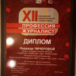 С 16 по 22 ноября в Центральном Доме кинематографистов состоялся XII Московский Международный телефестиваль «Профессия – журналист», который провела гильдия кинорежиссеров Союза кинематографистов России при поддержке Департамента средств массовой информации и рекламы города Москвы. В число победителей вошел документальный фильм «Надежда Чичерова: свет через себя» из ДНР.