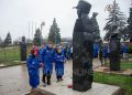 Девушки и юноши также возложили цветы к памятнику Герою России, командиру подразделения реактивной артиллерии гвардии-полковнику Ольге Качуре (Корса).