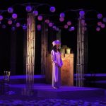 Сценическое пространство разделено на шесть блоков, создавая те самые аллеи, где и происходят события из рассказов. В постановке задействован поворотный круг, который не так часто, но успешно используется в спектаклях. На 26 артистов пошито более 60 костюмов, на сцене используются 170 фонарей различных форм.