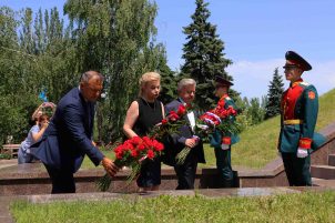 Сегодня, 22 июня, в День памяти и скорби жители Донецкой Народной Республики поддержали памятную акцию «Всероссийская минута молчания». Как сообщает корреспондент официального сайта ДНР, в рамках данной акции в Донецке состоялось возложение цветов к мемориалам «Жертвам фашизма» в Ленинском районе города.