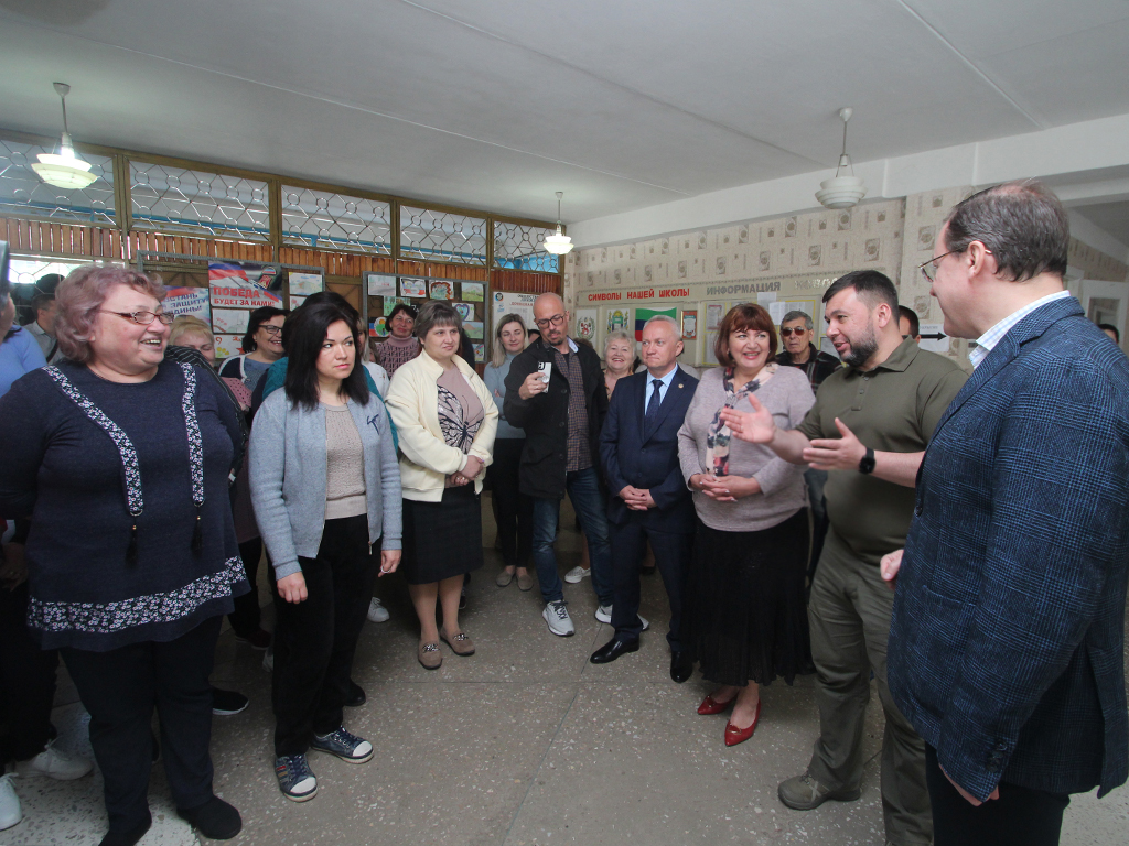 Сегодня, 27 мая, Глава Донецкой Народной Республики Денис Пушилин вместе с губернатором Самарской области Дмитрием Азаровым посетили среднюю школу № 8 г. Снежное.