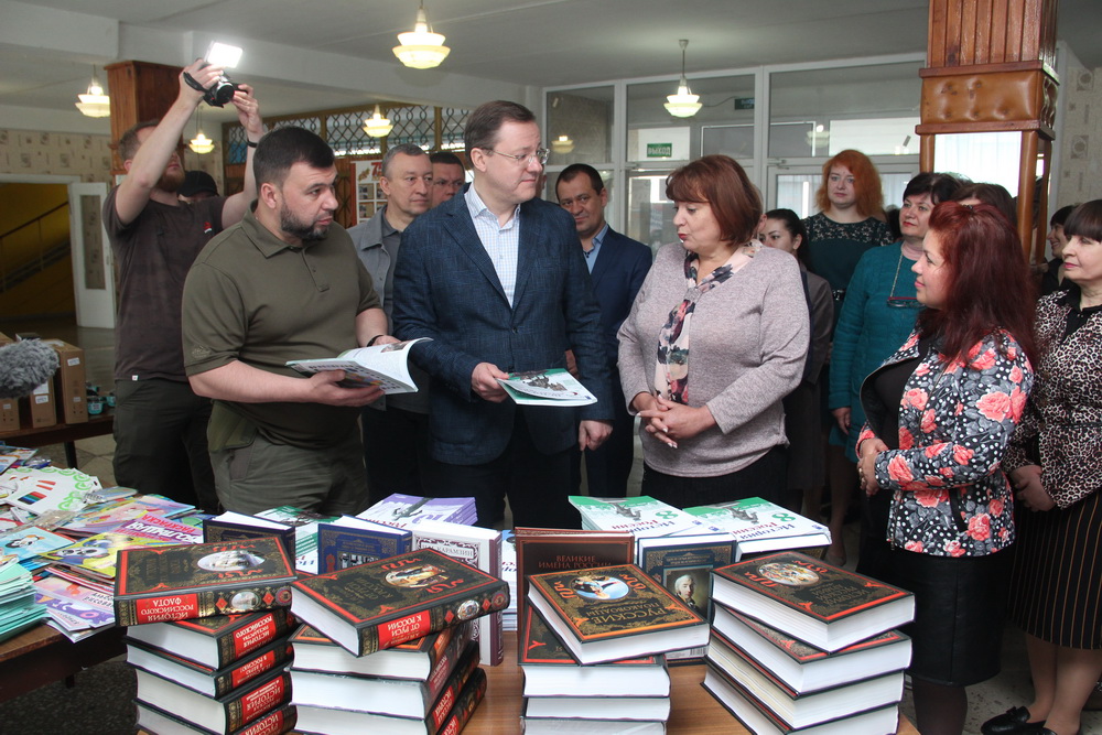 Как отметила директор образовательного учреждения Ольга Нещадим, Самарская область передала в школу в составе гуманитарной помощи коллекцию исторических трудов.