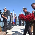 Также прошло возложение венков на воду по проходной части входных ворот аванпорта с катеров «Курсант Кировец», «В. Слободник», «ПК-205».