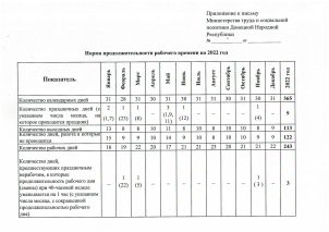 Как сообщили в Минтруда ДНР, в зависимости от установленной продолжительности рабочей недели для режимов работы с одинаковой продолжительностью рабочих дней в неделю, норма рабочего времени в сентябре 2022 год составит: