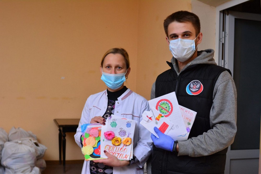 27 ноября, продолжая акцию #ВрачиГероиНашегоВремени, активисты ОД «Донецкая Республика» доставили в больницы рисунки и поделки от детей Республики, со словами благодарности и поддержки медиков, работающих с больными новой коронавирусной инфекцией. Также, медработникам передали продуктовые наборы. Об этом сообщает пресс-служба общественного движения.