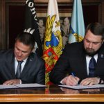Соглашение об установлении дружественных отношений между Дебальцево ДНР и Черноморским районом Республики Крым подписали глава администрации города Дебальцево Игорь Захаревич и председатель Черноморского районного совета Алексей Шипицын.
