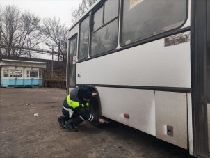 Инспекторы ГАИ проверяют техническое состояния автобусов, проводят с водителями пассажирского транспорта беседы о необходимости соблюдения Правил дорожного движения. Особое внимание правоохранители обращают на укомплектованность данных транспортных средств шинами, соответствующими зимнему периоду.