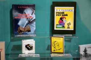 Отдельное место на выставке занимают авторские издания Вениамина Александровича Разумова. Он является автором более 500 научных статей по истории исследования миниатюрных книг и 42 книг для детей и для взрослых.