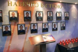 Почтив память ушедших героев минутой молчания, руководство, личный состав МЧС и родственники погибших сотрудников возложили цветы к мемориалу. В холле спасательного центра была открыта экспозиция «Стена Памяти – Навечно в строю» с портретами 13 сотрудников РСЦ. Их имена и героические подвиги навсегда вписаны в Книгу памяти.