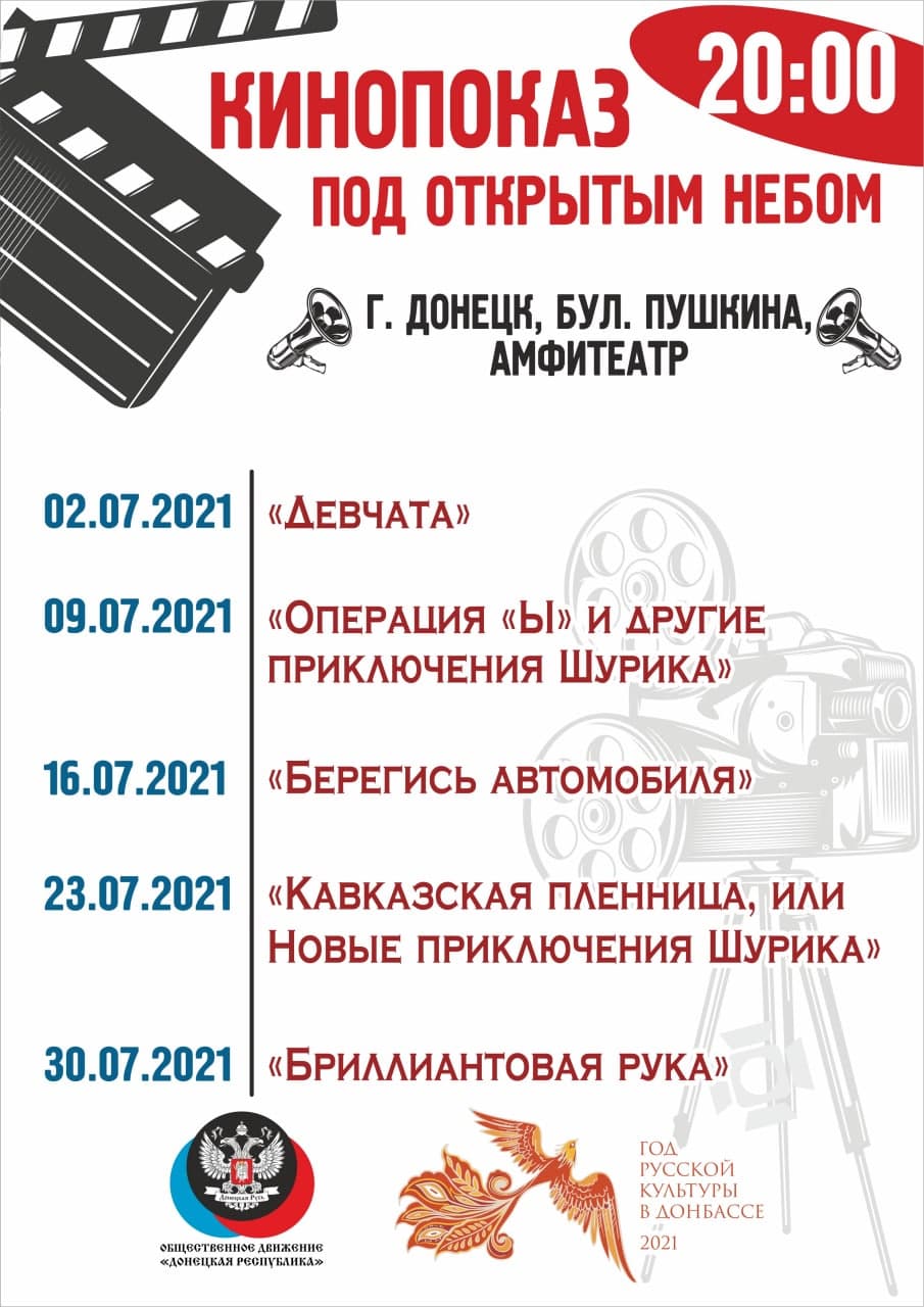 В Донецке вновь проводится популярная акция «Кинопоказ под открытым небом», организованная ОД «Донецкая Республика» в рамках Года русской культуры в ДНР.