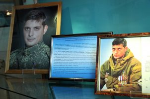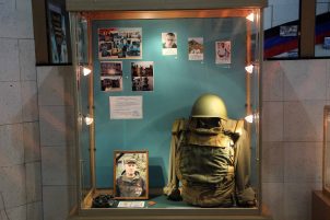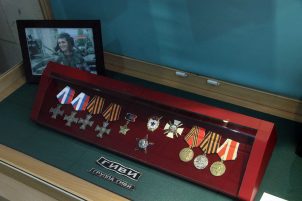 Отдельным стендом в экспозиции занимают награды и фотографии Героя Донецкой Народной Республики, командира батальона «Сомали» Михаила Толстых (Гиви), уроженца Иловайска.