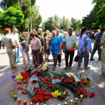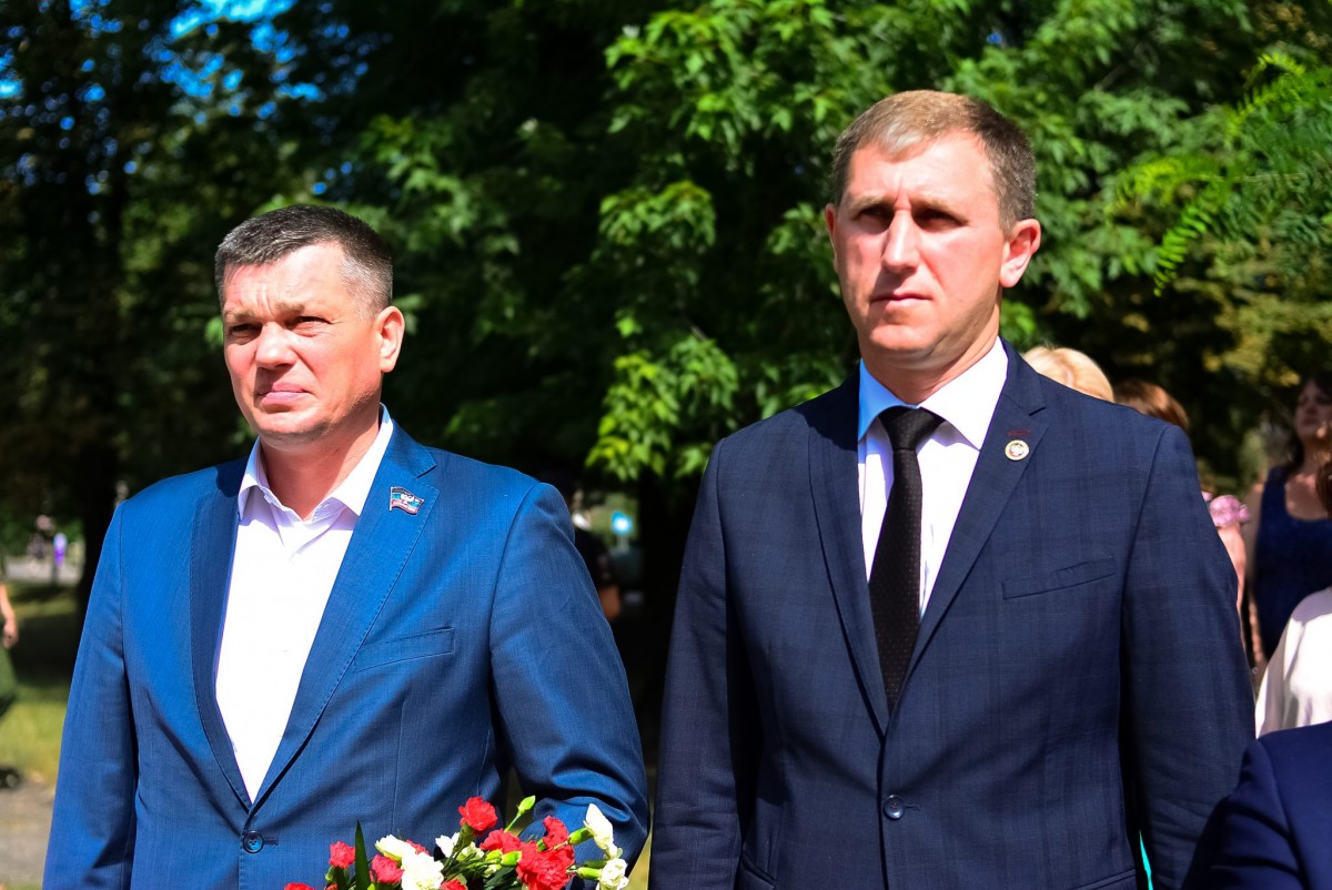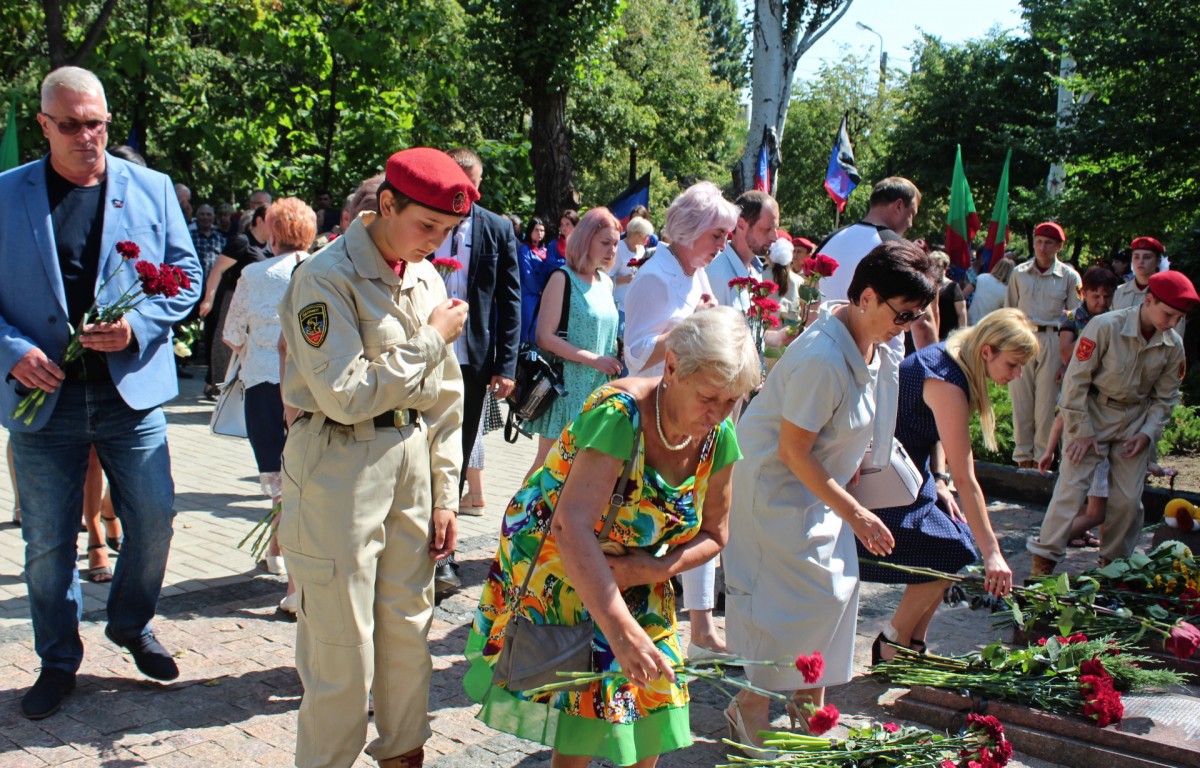 Почтить память погибших горловчан к мемориалу, расположенному в центре города, пришли Председатель Народного Совета ДНР Владимир Бидёвка, глава городской администрации Иван Приходько, глава администрации Харцызска Виктория Жукова, жители города.