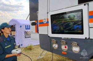 В МЧС ДНР прошли учения по проверке готовности системы антикризисного управления к действиям по предназначению. На месте развернули элементы первого эшелона оперативно-штабной подсистемы, при помощи которой сотрудники докладывают об оперативной обстановке. Также был размещен мобильный узел связи подвижного пункта управления, позволяющий организовать работу телефонной, радио- и видеоконференцсвязи.