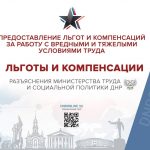 В Министерстве труда и социальной политики ДНР рассказали о правовом регулировании предоставления льгот и компенсаций за работу с вредными и тяжелыми условиями труда.