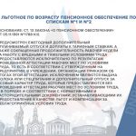 Льготное по возрасту пенсионное обеспечение по Спискам №1 и №2 (основание: ст. 13 Закона «О пенсионном обеспечении» от 05.11.1991 №1788-XII). Данный вид льготы предоставляется в соответствии со Списком №1 производств, работ, профессий, должностей и показателей на подземных работах, на работах с особо вредными и особо тяжелыми условиями труда, занятость в которых полный рабочий день, дает право на пенсию по возрасту на льготных условиях и Списком №2 производств, работ, профессий, должностей и показателей на работах с вредными и тяжелыми условиями труда, занятость в которых полный рабочий день дает право на пенсию по возрасту на льготных условиях, утвержденными Постановлением 7-25. Приказом Министерства труда и социальной политики ДНР от 03.04.2017 № 32/5 (с изменениями внесенными приказом Минтруда ДНР от 08.08.2017 №89/5) утвержден Порядок применения Списков №1 и №2 производств, работ, профессий, должностей и показателей при исчислении стажа работы, дающего право на пенсию по возрасту на льготных условиях. Предоставляется льготное по возрасту пенсионное обеспечение по результатам аттестации рабочих мест по условиям труда проведенной в соответствии с Порядком проведения аттестации на основании Показателей вредных и опасных производственных факторов тяжести и напряженности трудового процесса, указанных в приложении 7 к Методическим рекомендациям. Для подтверждения льготной пенсии необходима занятость в условиях, предусмотренных Списками №1 и №2 не менее 80 % рабочего времени, установленного для работников производств, профессий и должностей, с учетом подготовительных, вспомогательных и текущих ремонтных работ, связанных с выполнением трудовых обязанностей. Кроме того, для получения льготной пенсии в обязательном порядке результаты аттестации рабочих мест по условиям труда должны быть подтверждены заключением государственной экспертизы условий труда ГОСТРУДа ДНР.
