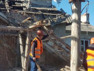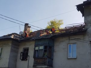 📸 В Ясиноватой восстанавливают поврежденный обстрелами жилой дом